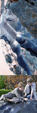 Geschliffene Steinpartien stehen in fühlbarem Kontrast zu der naturbelassenen schorfigen